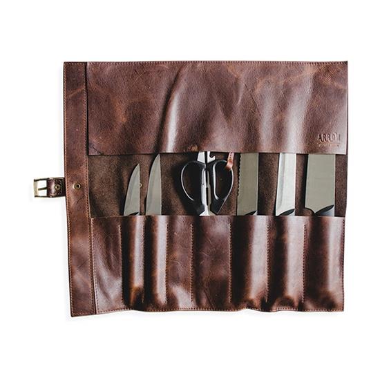 Beautifully hand crafted Leather knife rolls made by Arrow Leather Goods, based in Stellenbosch who have been designing and creating since 2014 to bring you a selected range of leather and canvas goods. The Arrow Leather Knife Roll Bag rooms for 7 full sized knives and its ventilated to keep damp tools from causing your roll from getting musty. Carefully combining age old traditions and new school technology, each product is purposefully handmade, ensuring craftsmanship quality.