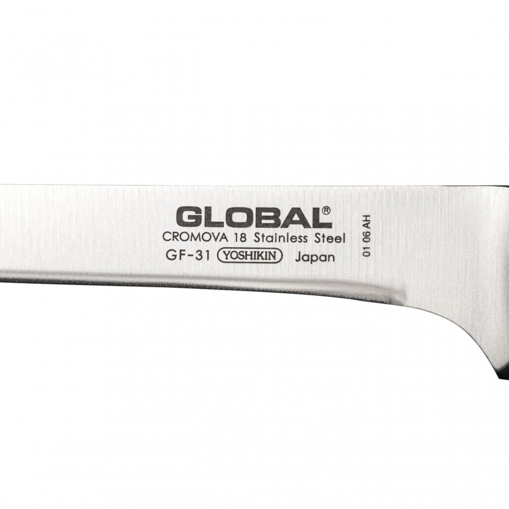 The Global G-21 Flexible Boning Knife 16cm is a classically shaped boning knife and is considered to be the standard boning knife in the Global series.