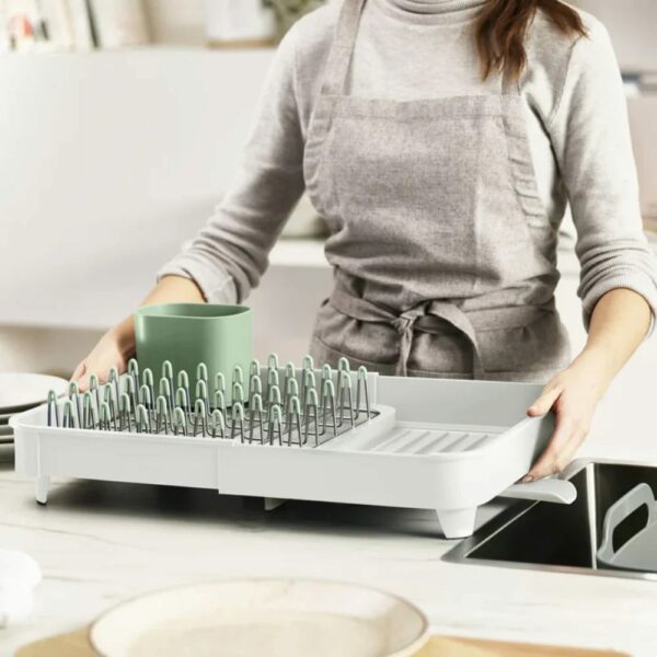 The versatile Joseph Joseph Extend Dishrack Stone Green allows you to quickly and easily expand your draining space. When required it can be extended to almost twice its size to accommodate the washing up after either single- or family-sized meals.