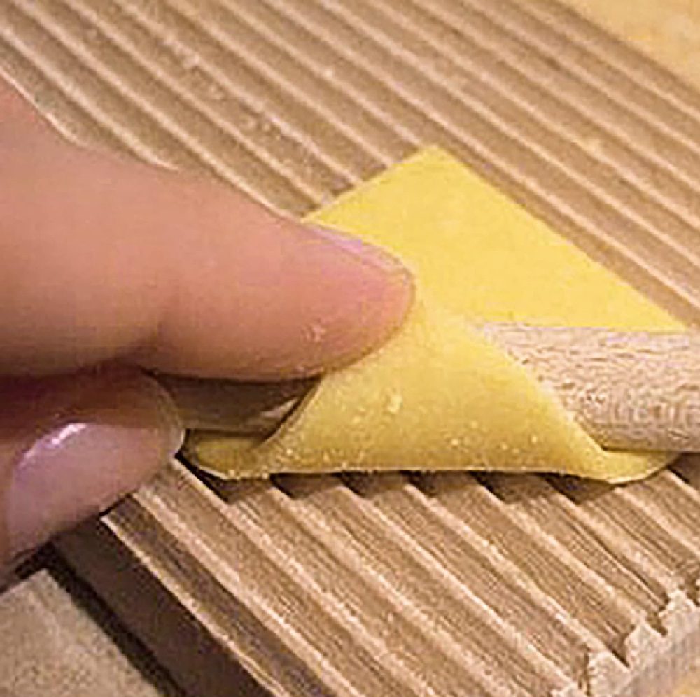 You can shape both gnocchi and garganelli. The tubular pasta from Emilia Romagna is made with the round wood included in the scope of delivery. We recommend pairing a sage butter with the gnocchi, while the garganelli are traditionally served with salsiccia, mixed mushrooms and tomato sauce.