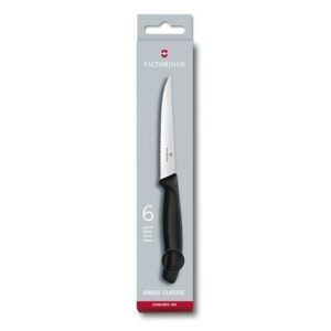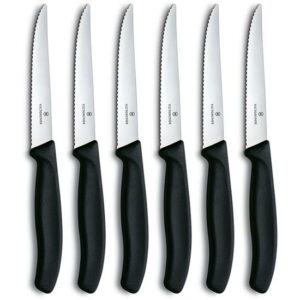 - Material – Stainless steel, rivetted handle, resin handle