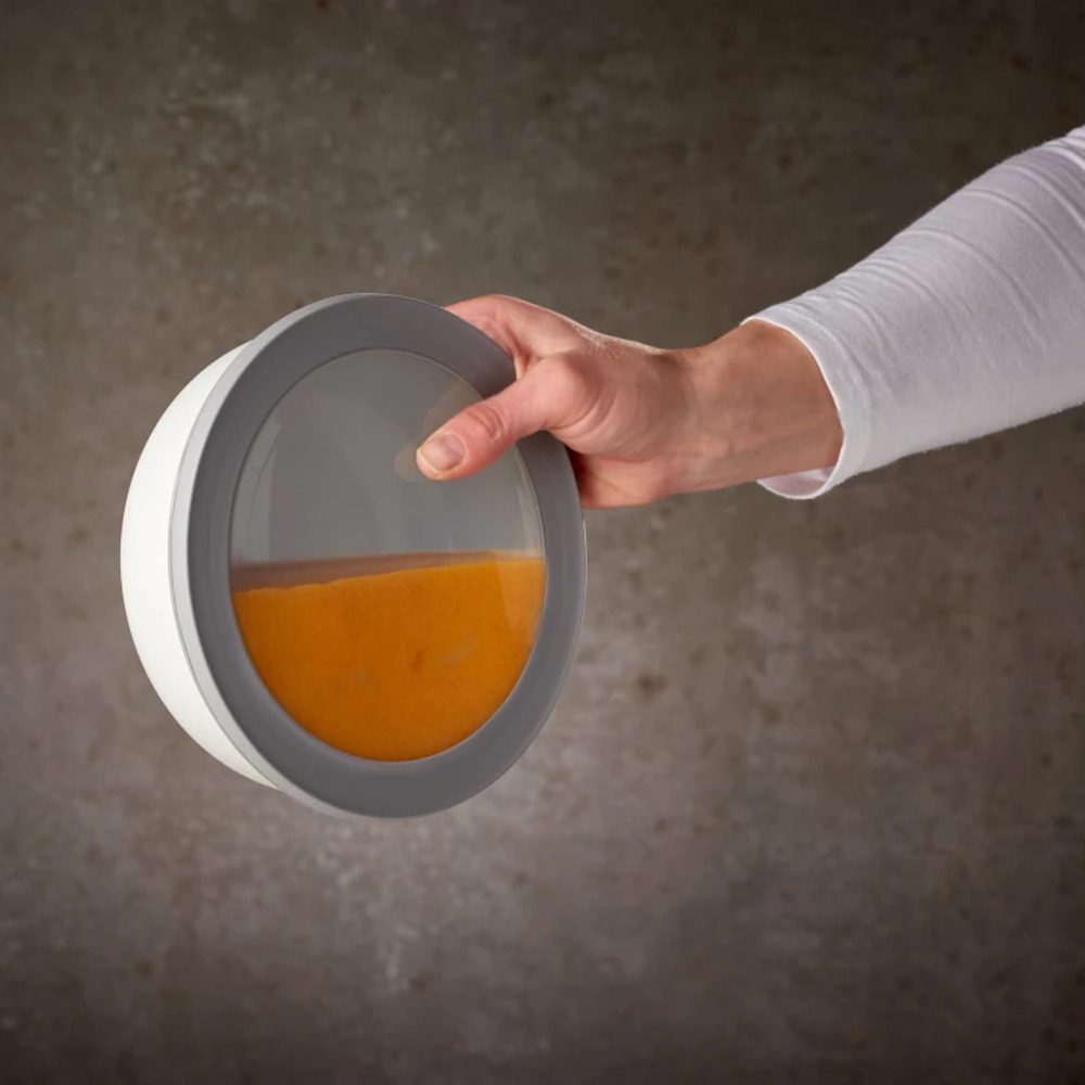 - Flexible, transparent lid that ensures an airtight and leak-proof seal