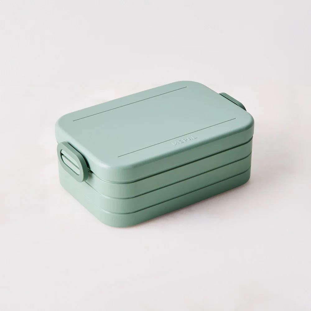 The Mepal Take A Break Midi Lunchbox is robust, airtight and equipped with a practical clip closure and a divider. This brilliant lunch box can hold 2 generously filled sandwiches made with 4 slices of bread. The sealing ring makes sure the contents always stay fresh. The lunch box is very robust, and it can be cleaned in the dishwasher after use.