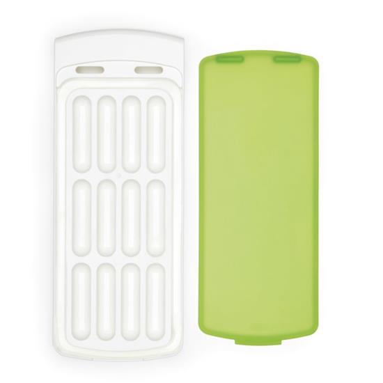 Beat the heat with the OXO Good Grips No-Spill Ice Stick Tray. These narrow ice sticks are perfect for water bottles of all shapes and sizes, or anything with a small opening. The unique silicone lid seals water in the Ice Stick Tray, preventing spills on the way to the freezer and allowing for angled storage in the freezer. The lid also protects ice sticks from absorbing freezer odors, and make it easy to stack things on top of the Tray. The comfortable handle provides a firm grip while filling and carrying the Ice Stick Tray, and the silicone lid is removable for easy cleaning.
