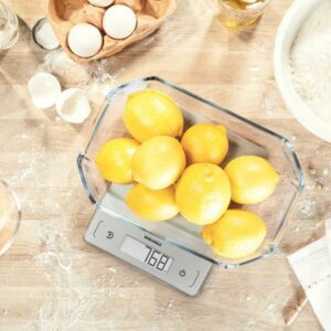 - Practical tare function for convenient weighing of different ingredients in one bowl