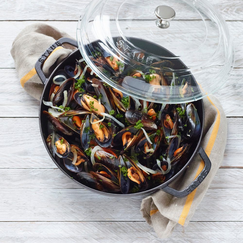 - Staub Cast Iron Saute Pan & Glass Lid 28cm