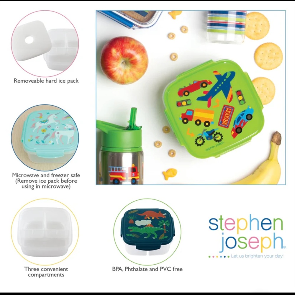 The Stephen Joseph Snack Box with Ice Pack is a smart lunchtime solution tailored for children and busy parents. Compact enough to slip into a school bag, yet thoughtfully engineered with three compartments to keep variety within reach. Its standout feature is a removable, built-in ice pack within the lid, ensuring snacks stay cool and fresh without needing a separate freezer block.
