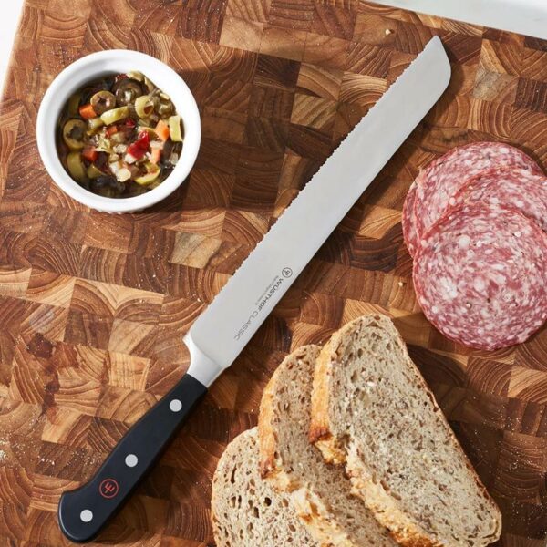 A classic amongst the range of knives that belong in every kitchen, this Wusthof Classic Bread Knife 20cm from Wusthof is perfect for use on bread, bread rolls, cabbage, head of lettuce, pies, cakes, hard-skinned vegetables and fruit, as well as for roasts, especially those with crackling.